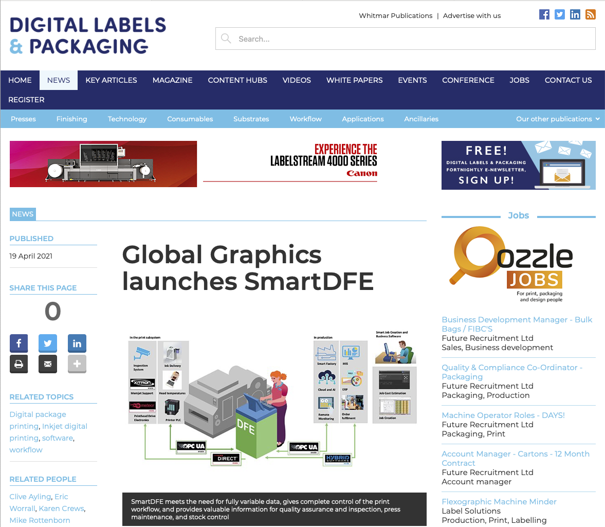 Digital Labels and Printer zeigt das neue SmartDFE von Global Graphics, ein Frontend für den Etiketten- und Verpackungssektor, das die Integration des Druckelements in eine breitere Produktionsumgebung unterstützen soll.