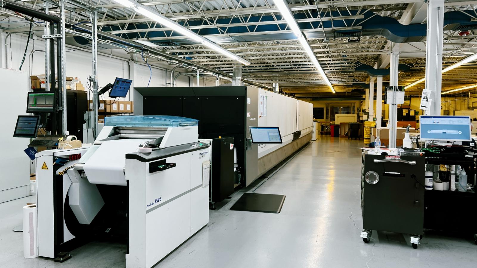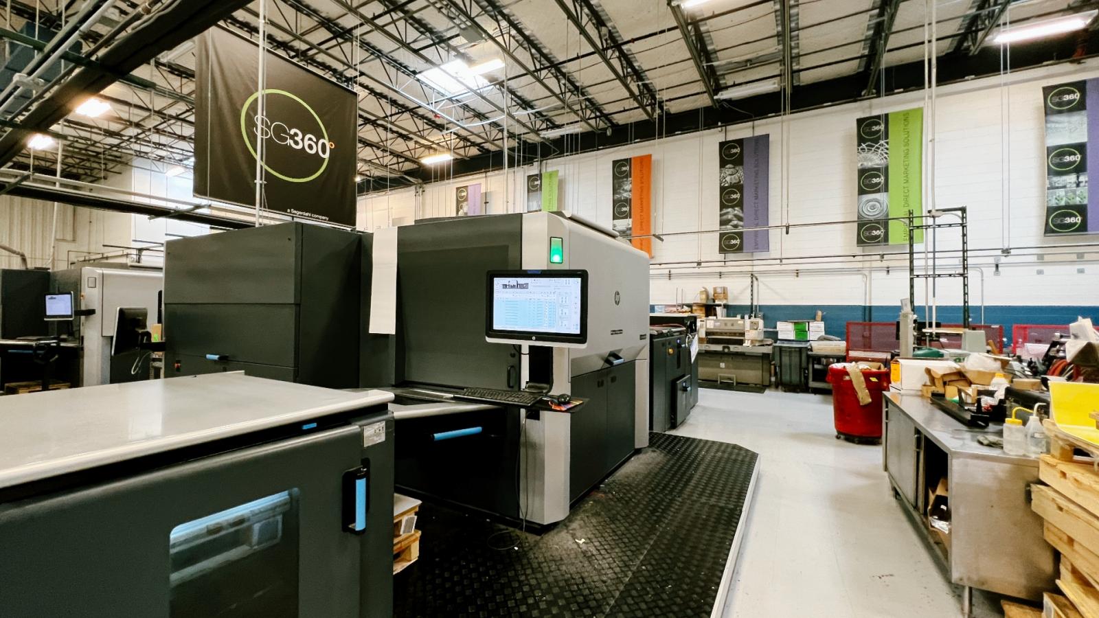 When INKISH visited SG360°, we were met by two very open-minded and friendly people, Marketing Coordinator Marie Ko and Director of Digital Operation John Zawisza. John Zawisza hosted a guided tour, which led us through one of the six sites SG360° operates today. At the Wheeling site, we see four Komori offset presses. All are using UV curing, not only for speed but also because SG360° offer comprehensive varnishes. The 8-color Komori is a straight press with two varnishing units, and the samples you will see in our film from SG360° are stunning. John Zawisza is very satisfied with the collaboration with Komori and the performance of the presses. The four machines are all B1 format (40"). Next to the offset hall, we enter the first of three digital halls. The first room contains the cut-sheet devices SG360° operates from Wheeling, which include multiple HP Indigo machines (7500s and 12Ks). In speaking further with John Zawisza, the current 7500s are traded for two new HP Indigo 100Ks. He ends by saying that he has big expectations for the 100Ks, as these are the machines most people consider to be the best Indigos. Next to the current 7500s, we see two HP Indigo 12000 as excellent workhorses.