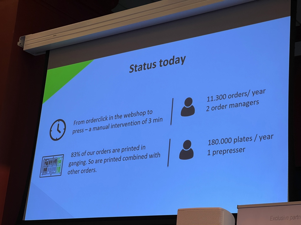 11:20 and now Niek Veraverbeke from Cartim talking about the amazing growth the printing company has had for the past 30 years. Today more than 8 million euros revenue with 35 people employed - only selling to other "printers."