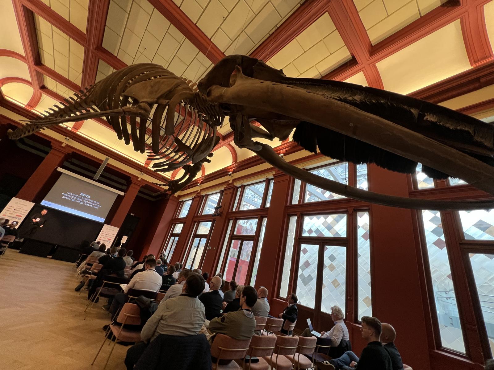 10:30 Managing Director Jos Steutelings welcome the 140 attendees - a few are delayed because of heavy traffic. The event takes place at the amazing Antwerp Zoo facilities - and the big whale skeleton hanging over the audience gives an amazing surrounding to an exciting day!