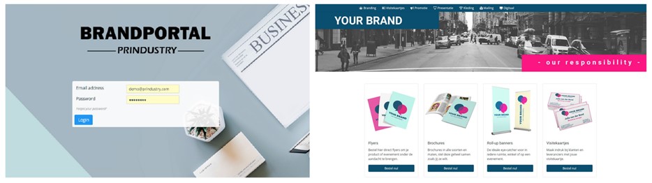 "A brand portal is a good online solution for our largest customer. It is a secure web portal for the purchase and creation of print products. The customer finds his products in a portal that can be designed with his own corporate colours, logo and banner. When ordering products, the customer logs in using on their portal or they go to the system from their SAP system. Within their brand portal, the customer finds two navigation menus: one for standard print products and one for the business cards; the product they order most often. An online editor allows them to format, review and save the business card as a PDF. An automated order process is error-free and much faster. We automatically receive the orders for the desired product.”Prindustry is a software company with big ambitions. The team consists of dedicated professionals who develop efficient software for SaaS communication portals. The software provides a fully automated solution for web shops with printed materials for resellers or brand portals with corporate identity communication for brand owners. Each portal has an extensive procurement and ordering platform that Prindustry develops in-house. The comprehensive platform has a workflow for orders, quotations, invoicing, accounting, stock, payment systems or online editing. As an independent software partner, the core business is to connect various specialized systems to the portals. In this way, customers always have the best tools and systems available.