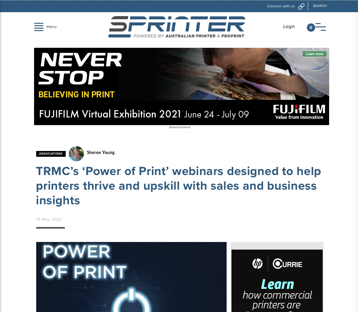 Staying with Australia, Sprinter reports that the Real Media Collective is running 10 weekly ‘Power of Print’ webinars to help print companies adapt to the post-pandemic business environment, starting in June.