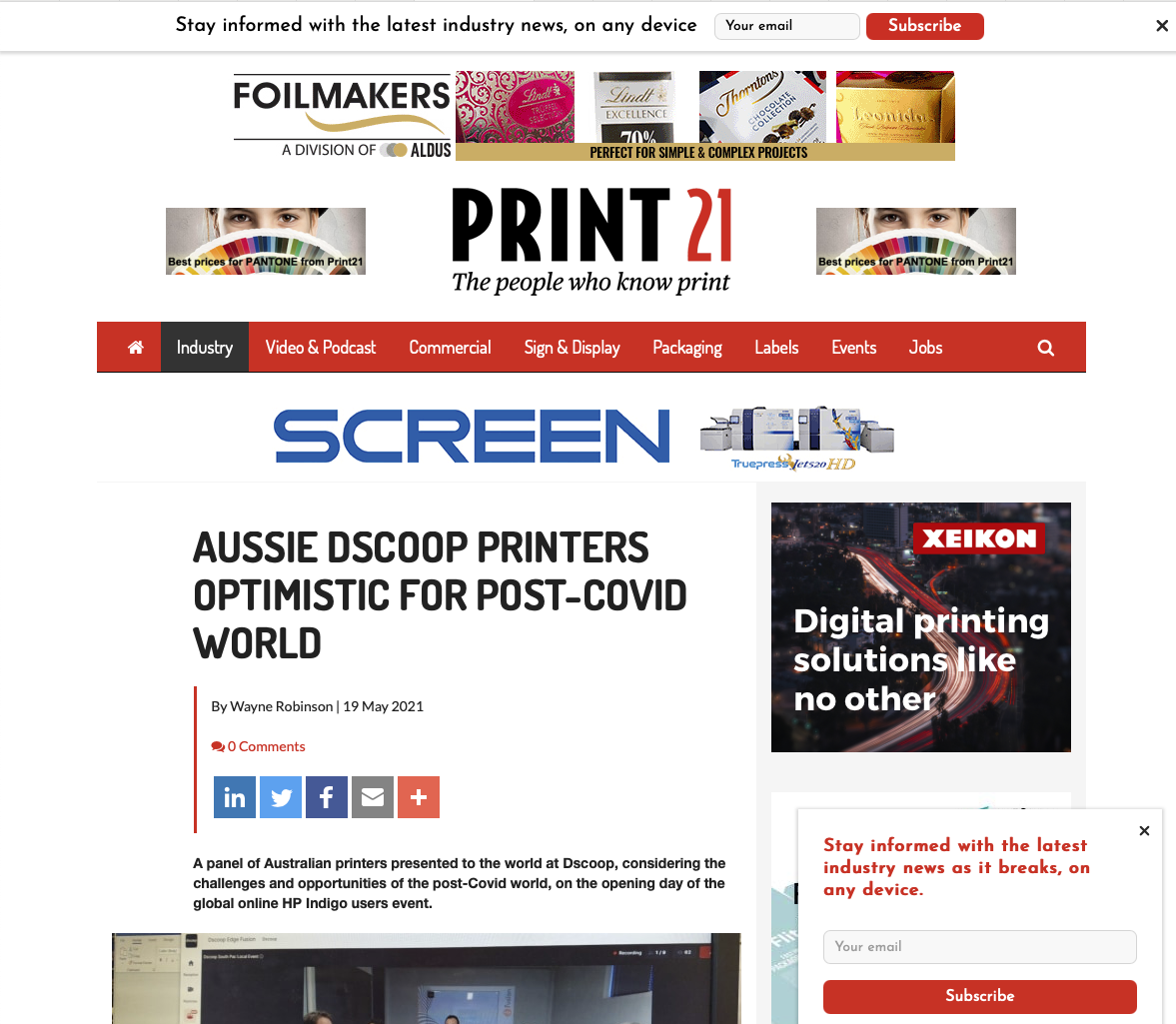 According to Print 21, Australian printers presenting at the HP users Dscoop conference were optimistic about the future of the print industry post-covid though highlighting the need to be open to new ideas and opportunities and agreeing that getting close to customers is key.