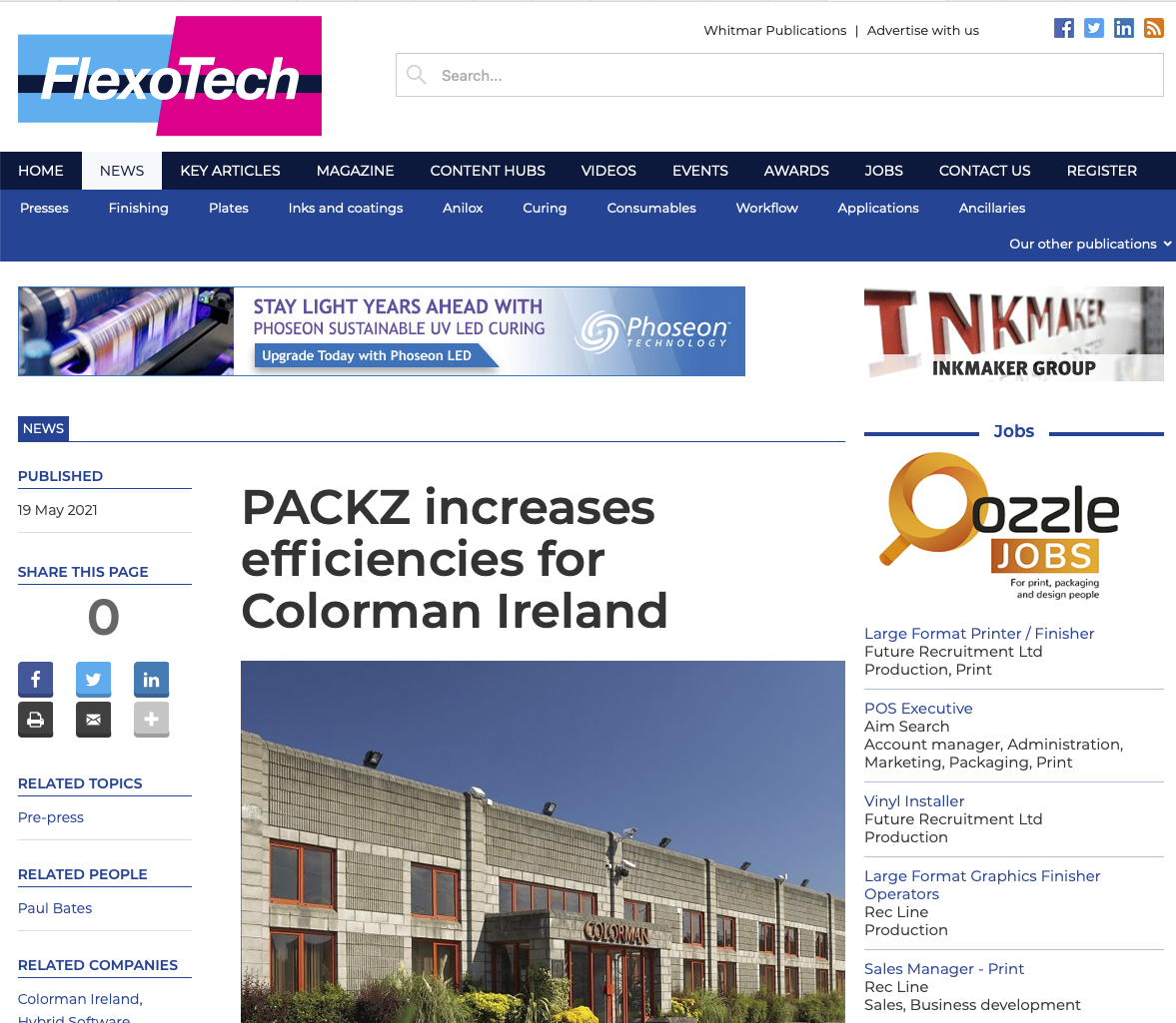 Meanwhile, Flexotech, based in the UK, reports that Colorman, a printing and packaging specialist based near Dublin in Ireland, has turned to Hybrid Software’s Packz native PDF editor to improve efficiency and cut costs in its prepress department.