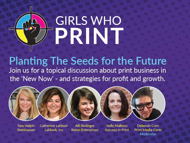 The event will start with open networking and segue into a topical discussion titled “Planting the Seeds for the Future; print business in the ‘New Now’ – and strategies for profit and growth with panelists Tara Halpin, CEO and President of Steinhauser; Catherine Lahlouh, Marketing & Business Development Specialist at Lahlouh, Inc; Alli Redinger, Account Management and Sales at Robin Enterprises; Kelly Mallozzi, Principal and Success in Print and moderated by Deborah Corn, Intergalactic Ambassador at Print Media Centr.