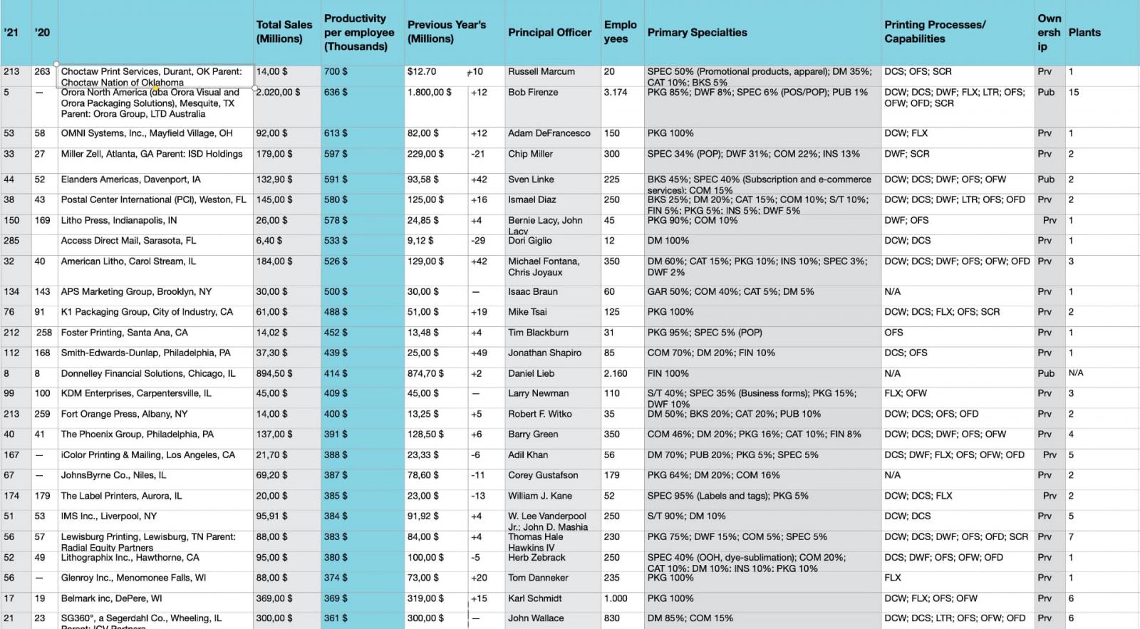 Top X lists are always interesting to read but always more appealing to me if the data can influence my own business. Most printing companies are not comparable to RRD, for example, and though there is an intense bidding war for the company, I am not sure why? The long-tail again proves to be right - on the top 300 list from Printing Impression. Suppose you buy the 20 lowest ranking companies above the average Productivity of $233,000. In that case, you buy yourself a revenue of $832 million with growth from 2020 to 2021 of a little more than 10% vs. RRD, decreased revenue by 16%, and Productivity of only $145,000.