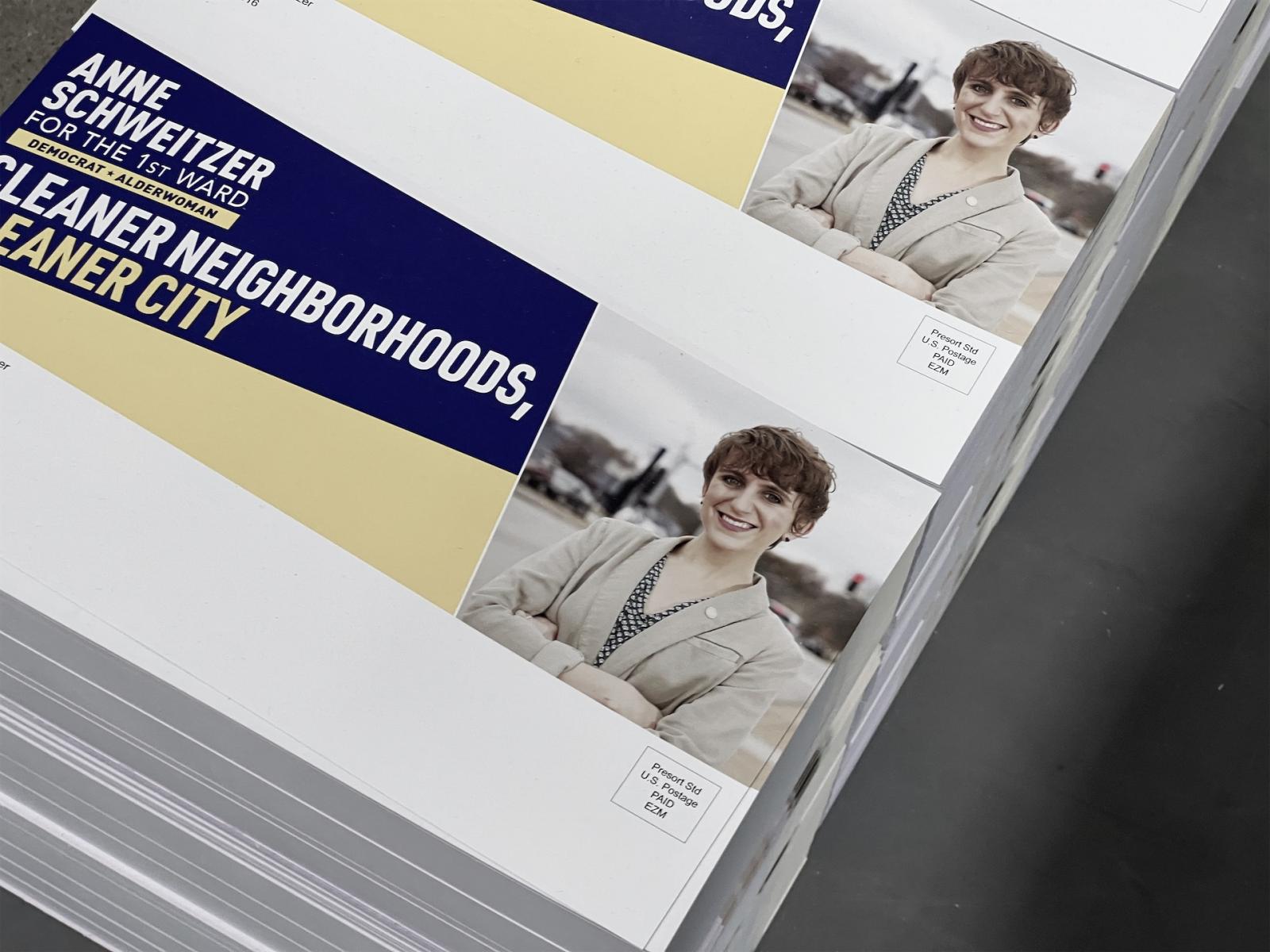 As mentioned earlier, EZ Mailing focuses on political printing, which means flyers, postcards, and stitched products, typically enveloped and mailed to whoever gets this campaigning material. EZ Mailing has in-house two-color overprint of envelopes, two guillotines for cutting the paper, inserters, three lines for inkjet addressing, and many folders creasers, all needed to manage everything in-house.