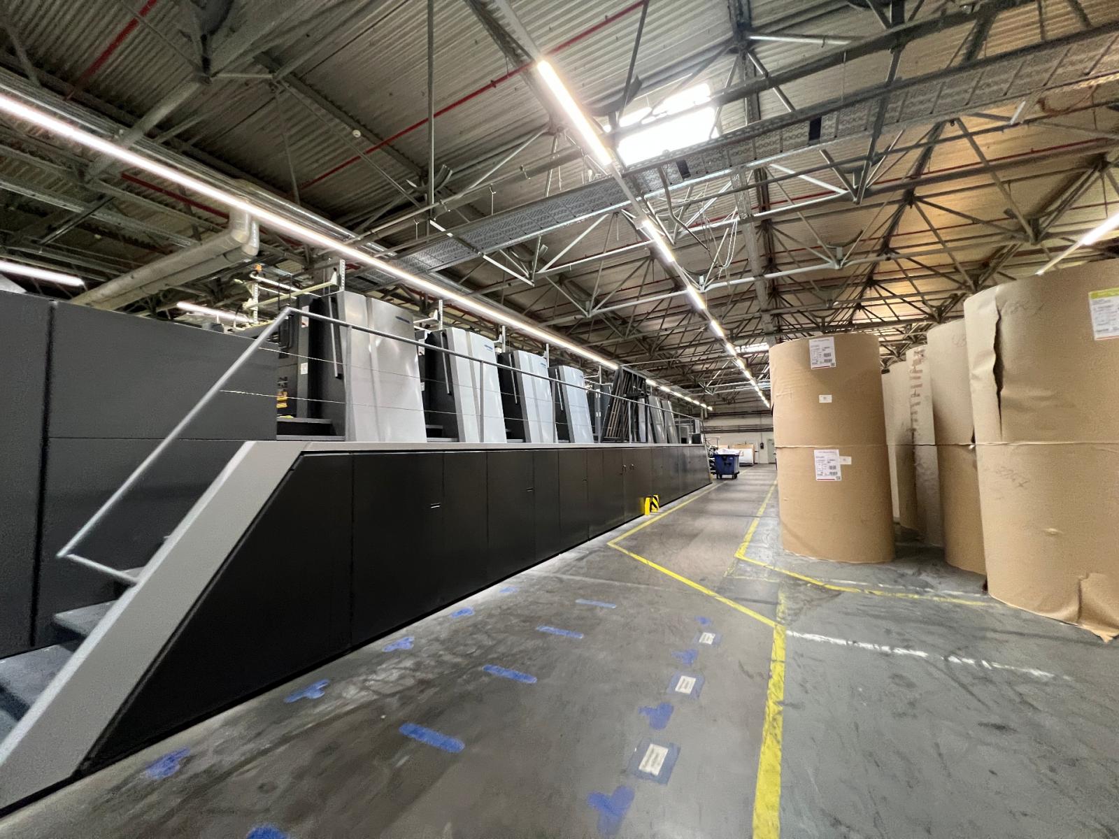 But let's get back to Saxoprint. When entering the production, the first that meets you is the two giant offset machines. The two roll-fed (cut into sheets) 162 cm format 8-color offset machines are enormous and surrounded by rolls and pallets of paper; you soon realize this company is beyond the normal. Following the two 162 machines, you get to another line of Heidelberg offset machines in various formats. Saxoprint is a front runner as the first of many machines is equipped with a Heidelberg automatic plate changing system. All the machines run at 17000-18000 sheets per hour. While looking at the machines, I realized that the highly automated machines typically run 1500-2000 sheets in a few minutes, change the plates, run 30 sheets for setting up the next job, and only minutes after again run at full speed. Amazing to see, and with about 20 machines on site, you realize the incredible amount of sheets being produced.