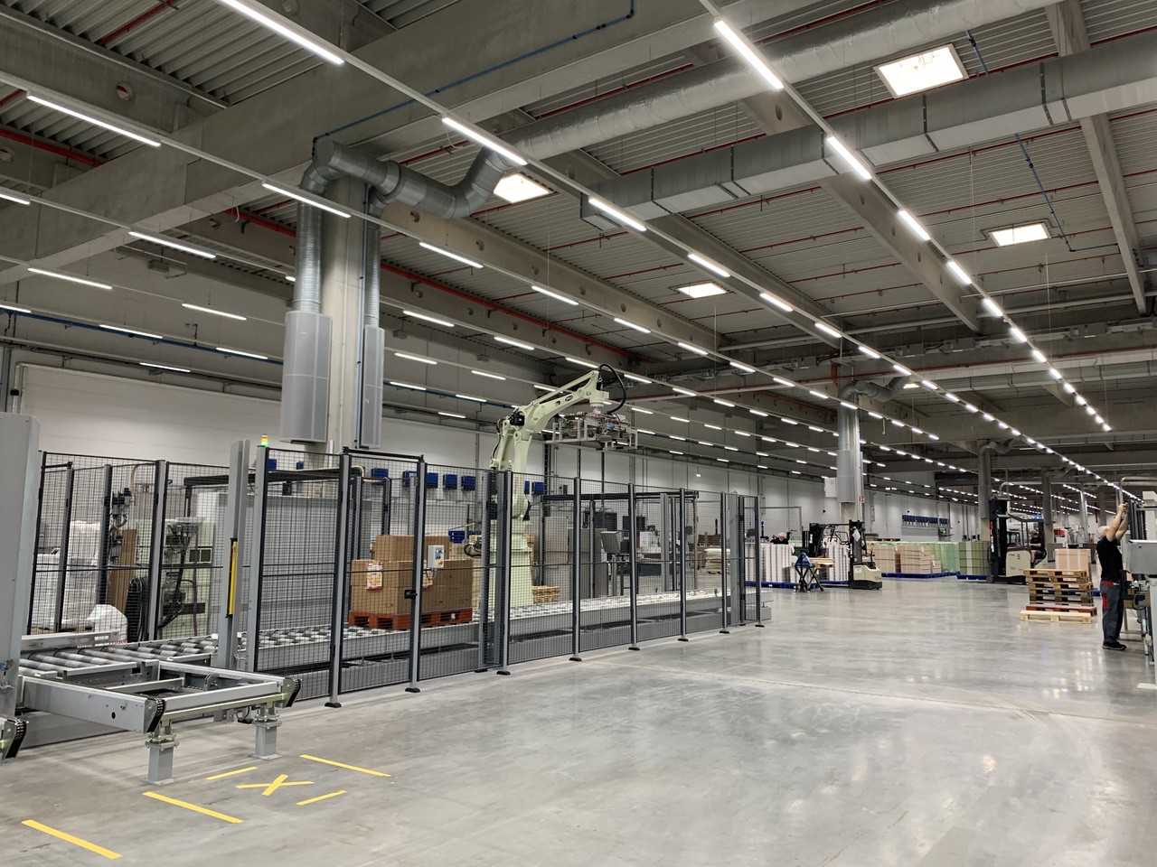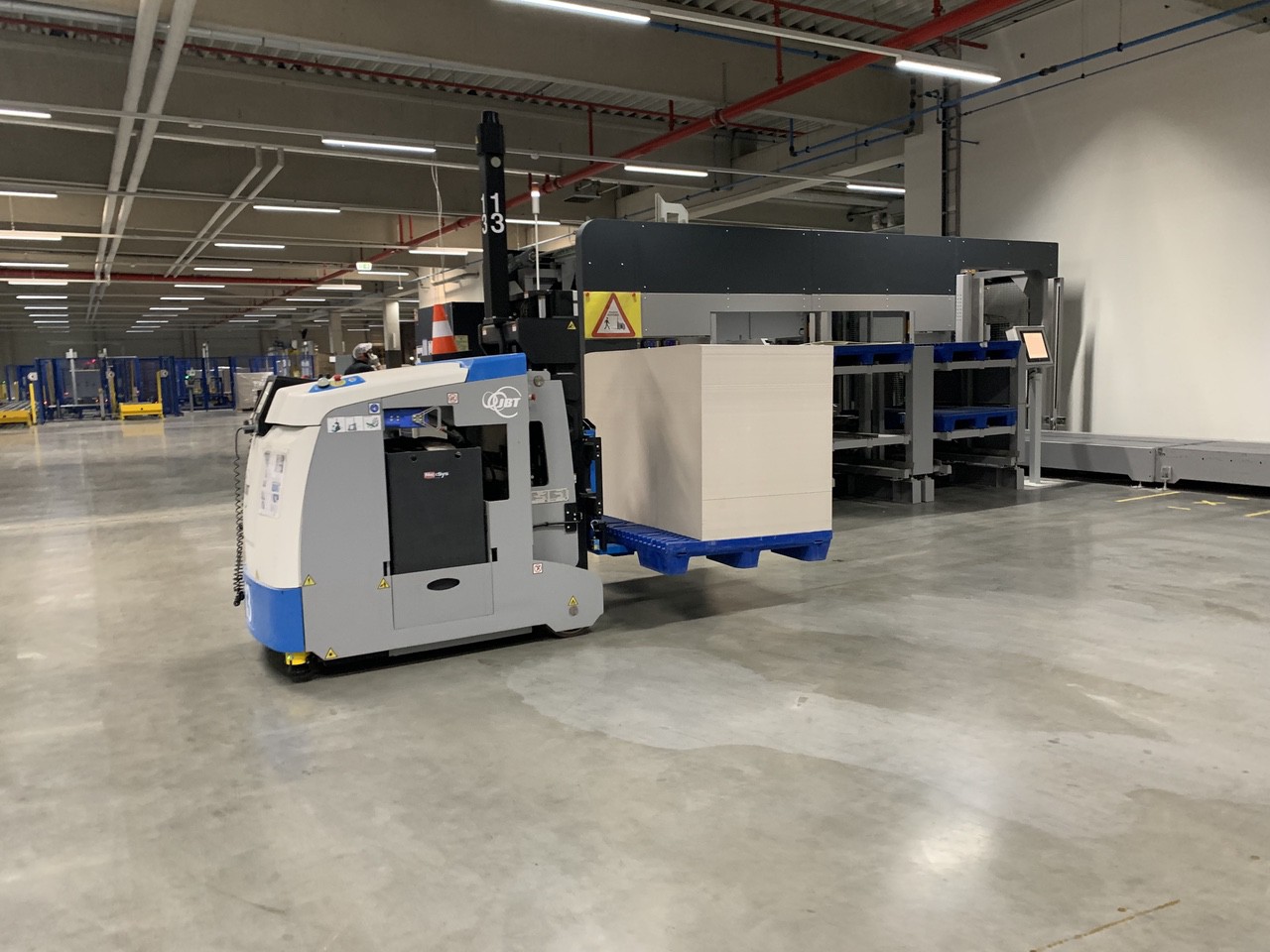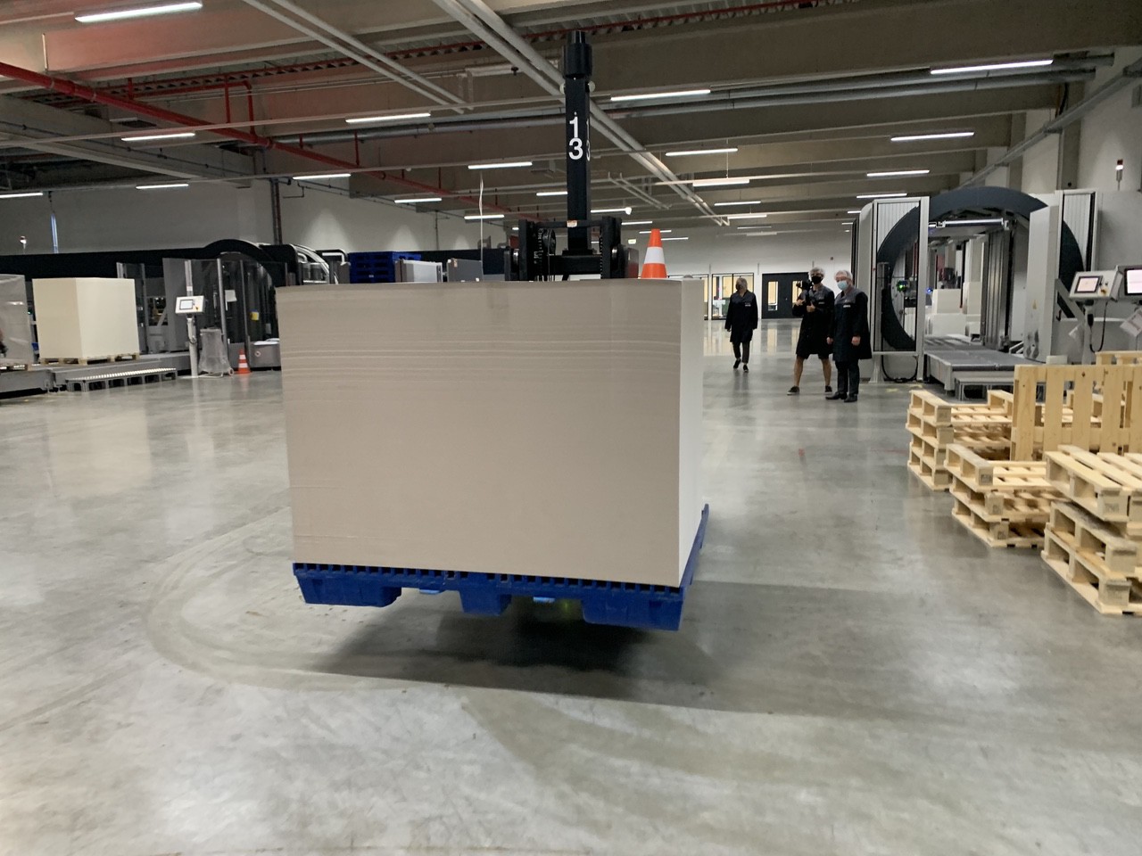 When the die-cutting lines are ready - and as far as I remember, there were five, the AGV's again automatically pick up the pallets and deliver them directly to the cutter. To see how machines and people work closely together is quite amazing.