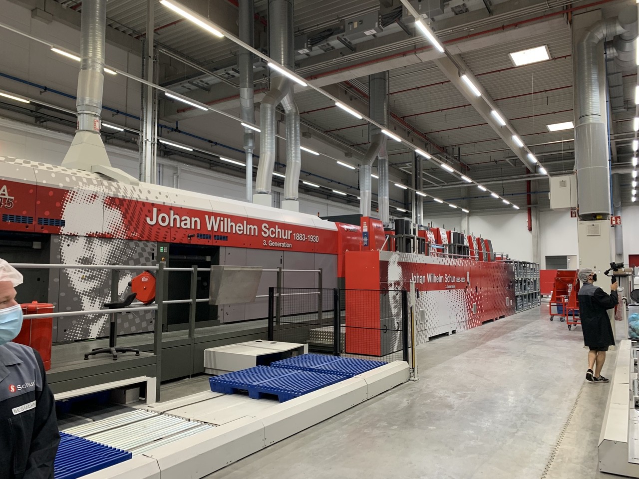 Klaus Madsen is giving us a tour, and you very soon realize that this is a printing/packaging company like no other. Three Koenig & Bauer printing machines (1 x 106 and 2 x 145) are foil-wrapped in Schur's red colors and named after family members of the Schur company. Schur Pack is a 175 years old family-owned company and has become a global player focusing on packaging and flexible. The company has grown faster in the past 20-30 years and today operates entities in Europe, North America, and Australia.