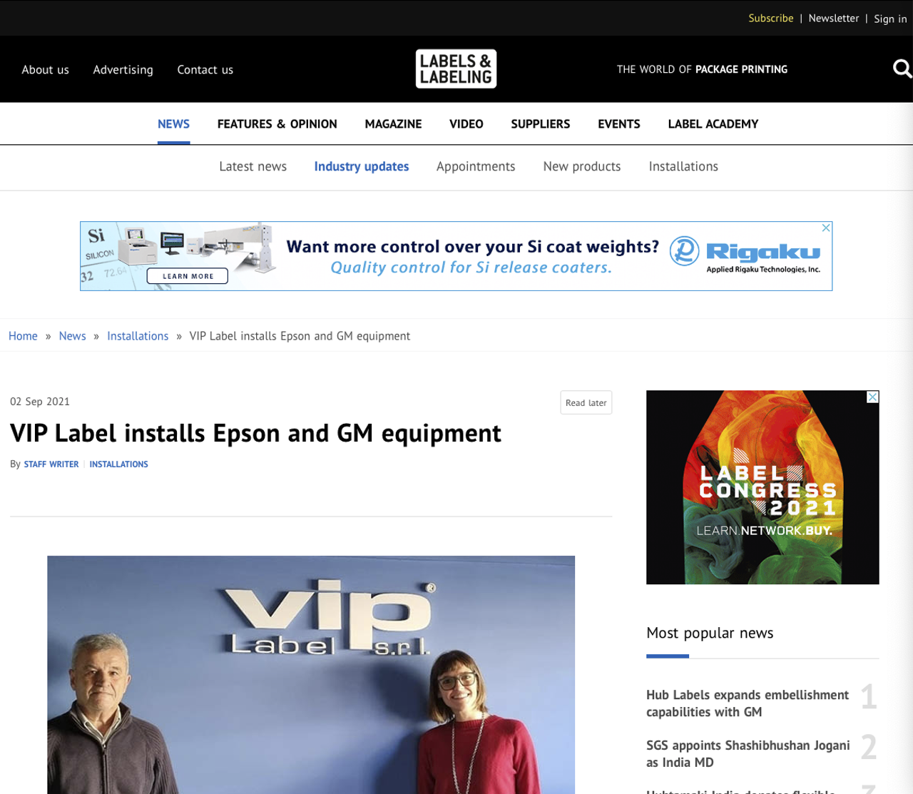 Labels and Labelling also reports that VIP Label, based in Argentina, has set up a new digital division and installed an Epson SurePress L4533AW press complete with a GM DC330 digital finishing line. The company is hoping to become one of the top five converters in the Argentine market.