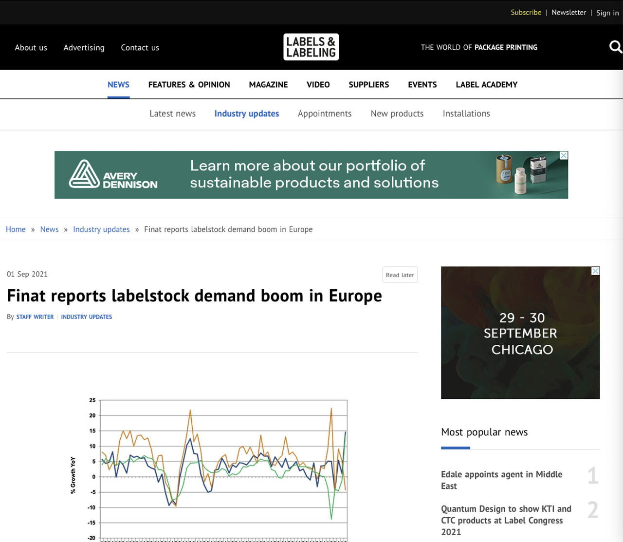 Labels and Labelling has a report from Finat, which found that demand for Labelstock rose in Europe in the second quarter of this year, after a slow start in the first quarter. Interestingly, Finat found a greater increase in the volume of demand for paper roll rather than filmic roll label materials.