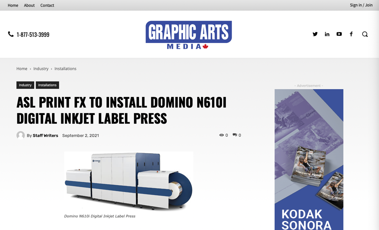 The Canadian title Graphic Arts Media, reports that ASL Print, based in Woodbridge in Ontario, Canada, is to install a Domino N610i digital label press. This company, which already has 12 digital and flexographic presses, specialises in unique label solutions for the wine, spirits and beer industries.