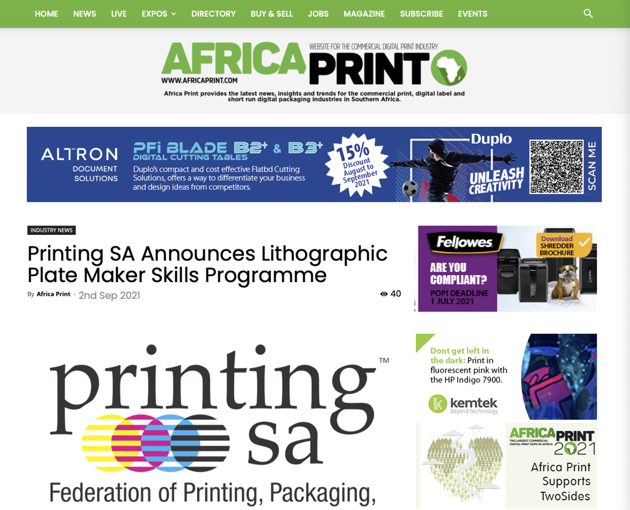 Africa Print has a story from Printing SA, which has developed a range of short learning programmes that form part of the new South African Qualifications Authority (SAQA) registered Carton Maker qualification. The federation also has a similar range of courses for the SAQA’s forthcoming Electronic Pre-Press Lithographic Technician qualification.