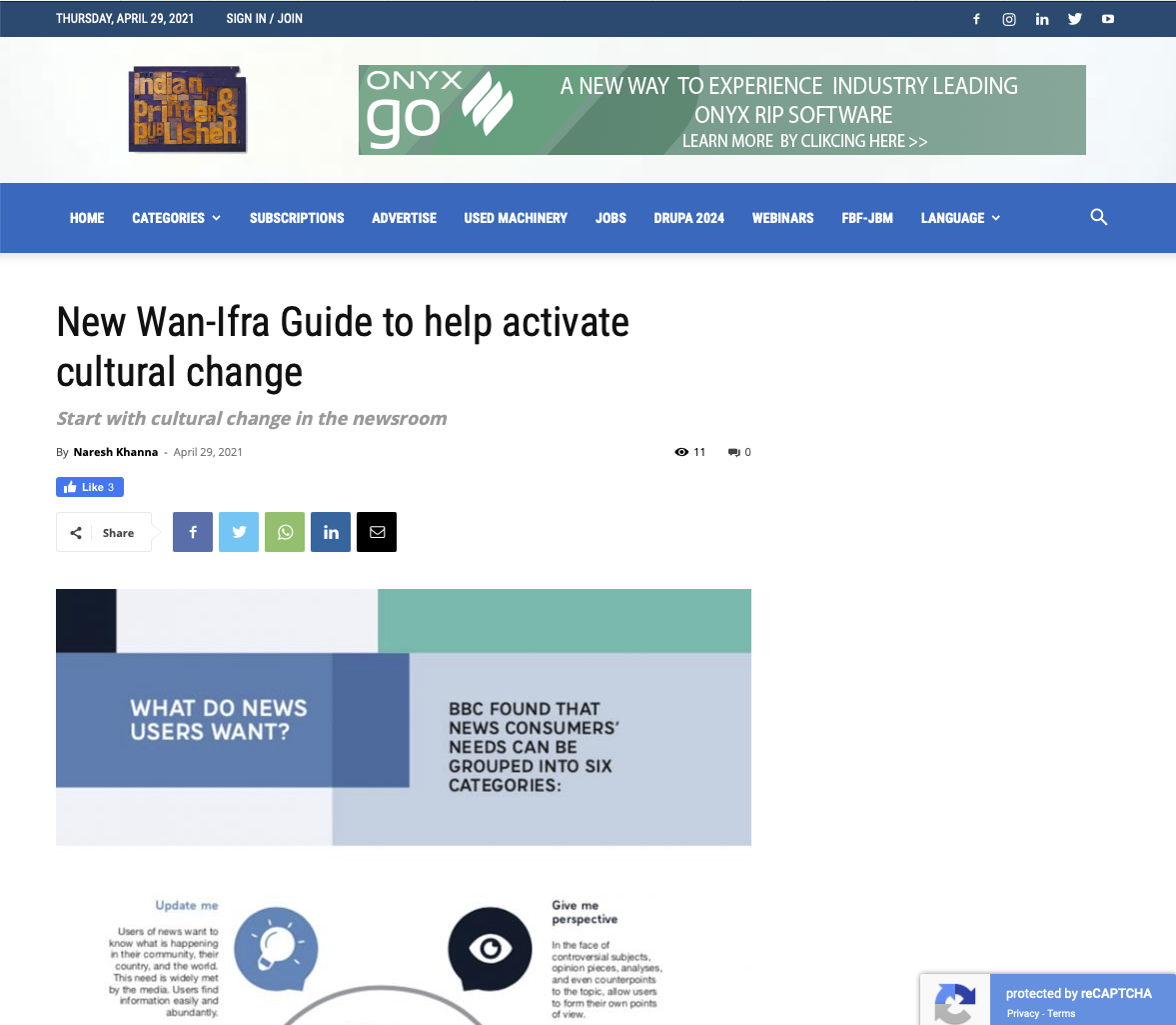 L'IPP fait également état d'un nouveau guide édité par Wan-Ifra (l'association mondiale des éditeurs de presse) qui résume les principales leçons partagées lors du Cultural Change Ignition Program pour les éditeurs de presse d'Amérique latine afin d'aider les entreprises médiatiques à améliorer leurs salles de rédaction.