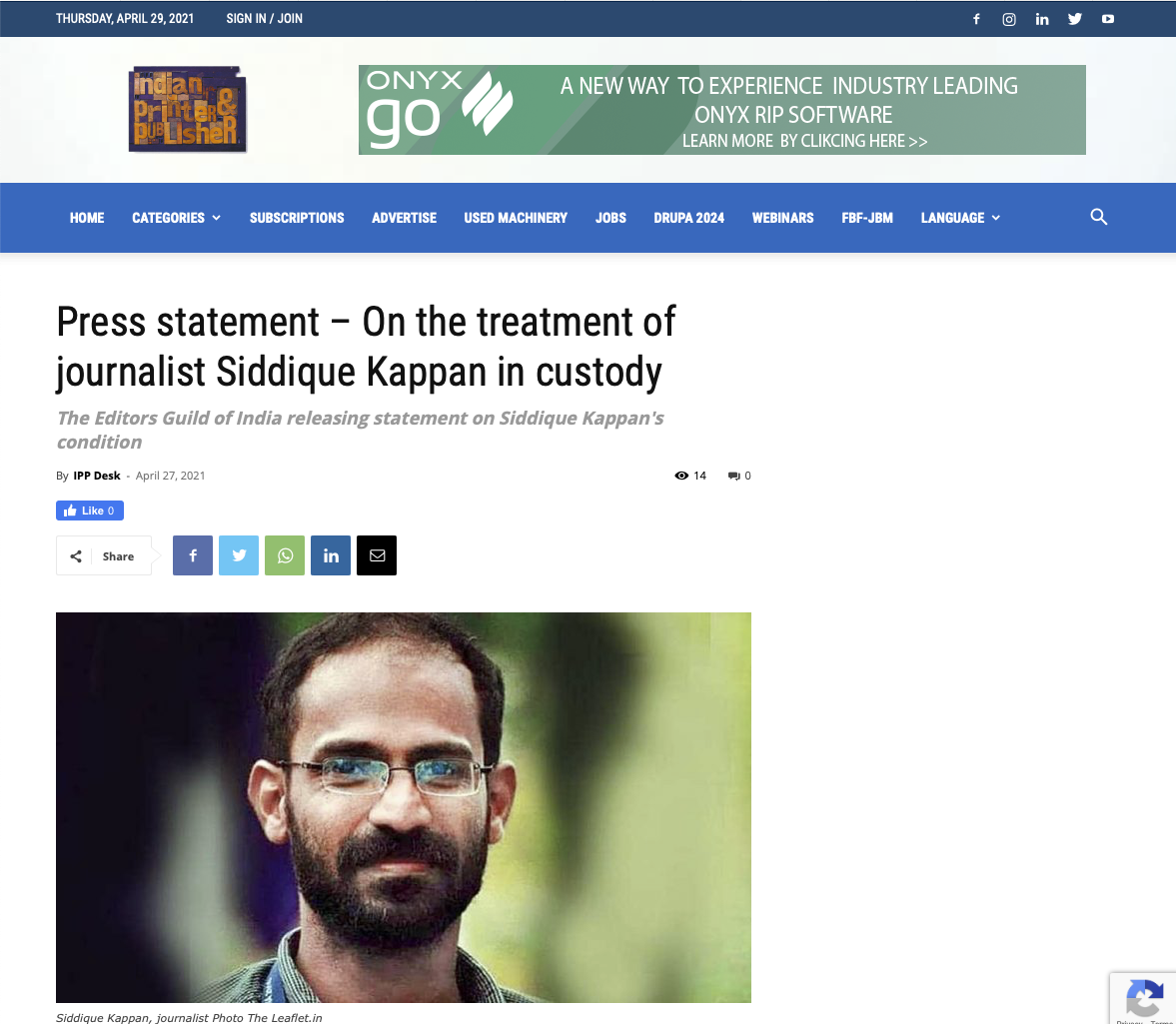 Enfin, l'IPP publie une déclaration de l'Editors Guild of India concernant le traitement du journaliste Siddique Kappan, arrêté et prétendument battu après avoir rapporté le viol et la mort d'une jeune fille en Uttar Pradesh ; un traitement qui devrait être condamné par tous ceux d'entre nous qui travaillent dans le journalisme.