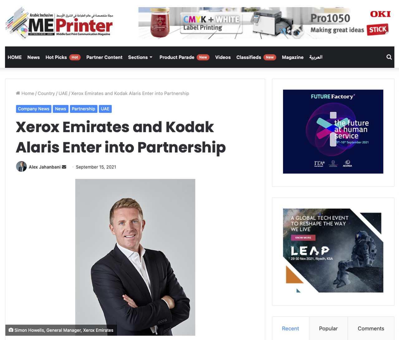 ME-printer schrijft dat Xerox Emirates een strategisch partnerschap met Kodak Alaris is aangegaan om een nieuwe generatie van documentafvangtechnologieën en geavanceerde papierloze diensten in te voeren op de bredere UAE-markt. Deze chimes met de UAE-regering's push voor technologische oplossingen met inbegrip van papierloos in de hele Emirates ' business eco-systeem.
