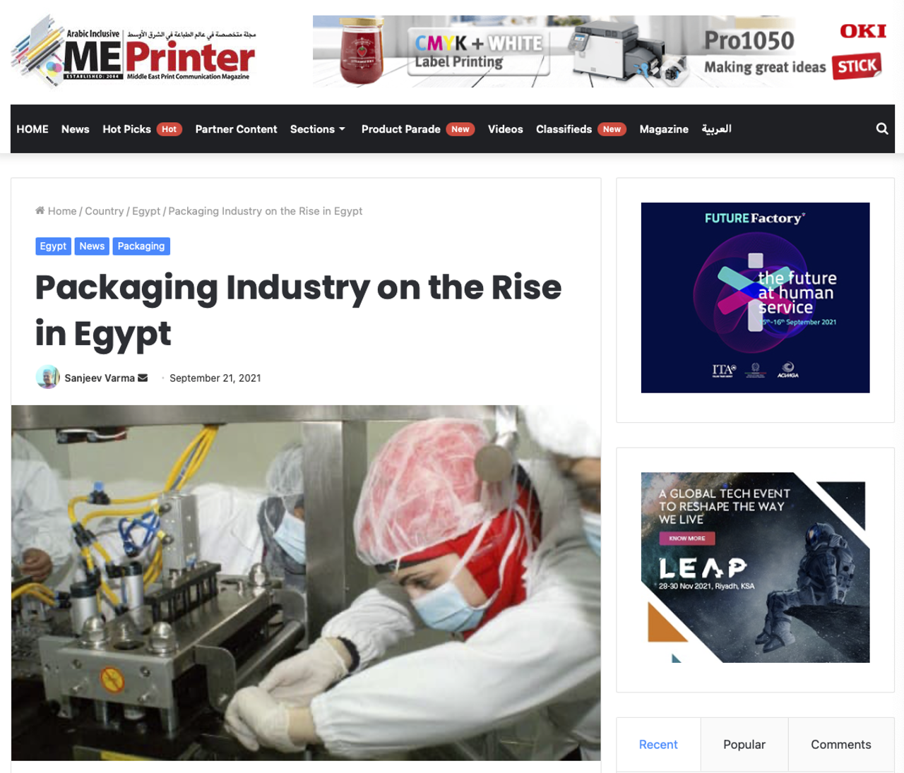 ME-printer , gevestigd in de Verenigde Arabische Emiraten, heeft een verhaal citerend Adel Abdel-Sadek, een Egyptische marketing expert, die wijst op de groei in de ontwikkeling van technologie en het importeren van grondstoffen voor de productie van verpakkingen in Egypte. Er wordt nu gewerkt aan de financiering van de invoer van grondstoffen voor farmaceutische verpakkingen.