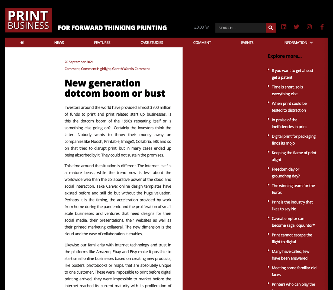 Business afdrukken begon de week uit met een redactionele opmerking dat beleggers hebben bijna $700 miljoen op print en gerelateerde start-up bedrijven en suggereert dat onze gemakkelijke vertrouwdheid met het doen van zaken via het internet, in combinatie met digitale afdrukken, heeft het gemaakt veel gemakkelijker te starten-up nieuwe niche bedrijven.